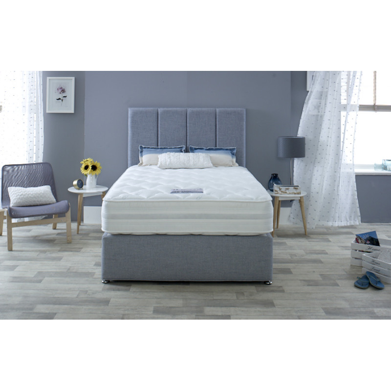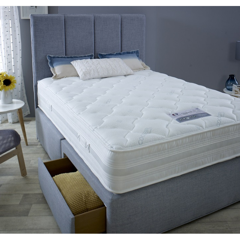 Mattress · 1,000 Pocket Springs (In a 5ft Bed) · Medium Comfort Support · Dual Sleeping Surface for Summer and Winter Seasons Winter Side - Memory Foam Layer with Luxury Fillings, Luxurious Micro-Quilted Knitted Cover Summer Side - iGel™ Ice Fabric Cover with Natural Silk · Air Ventilator Borders to enable mattress to breathe · Flag Stitched Handles (not available on 2ft6 or 3ft) · Turnable mattress · Trading Standards Approved · Made in the UK · 5 Year Warranty