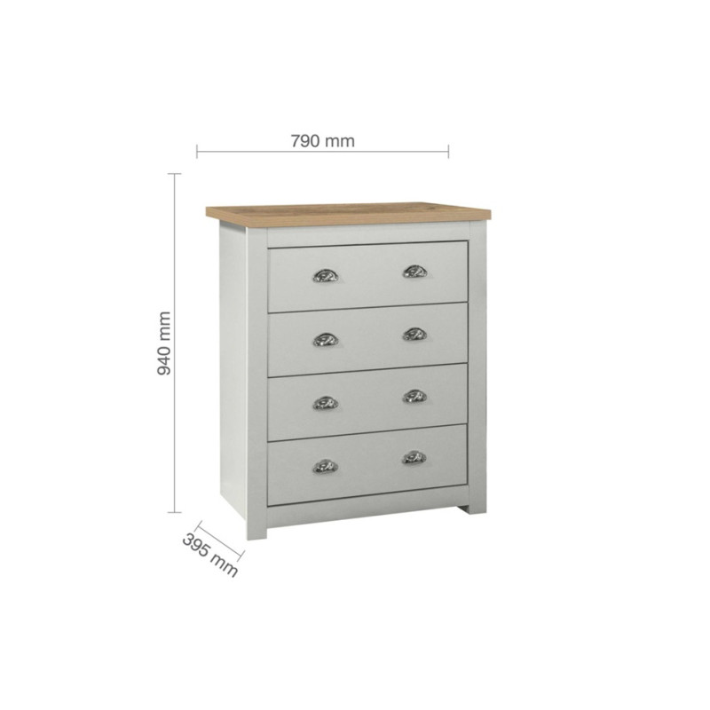 Highgate 4 Drawer Chest (Grey & Oak) *Low Stock*