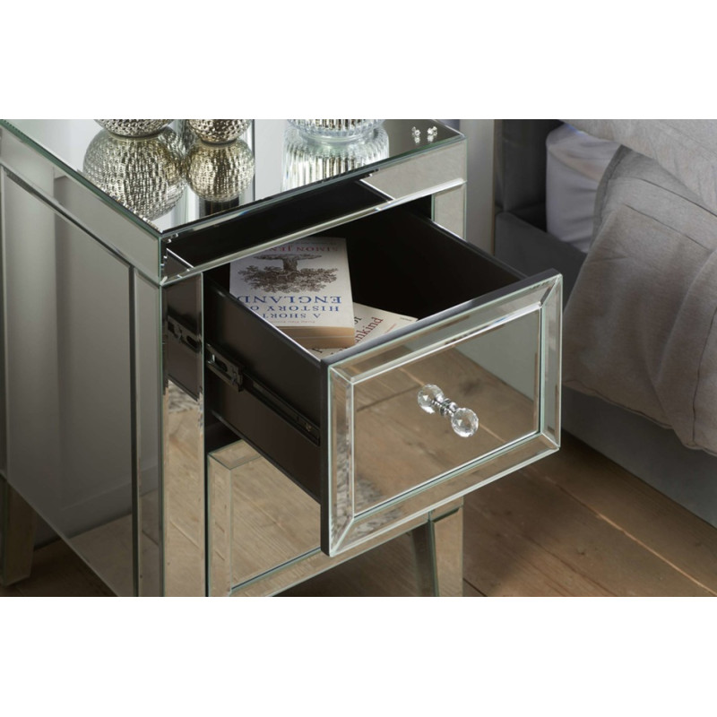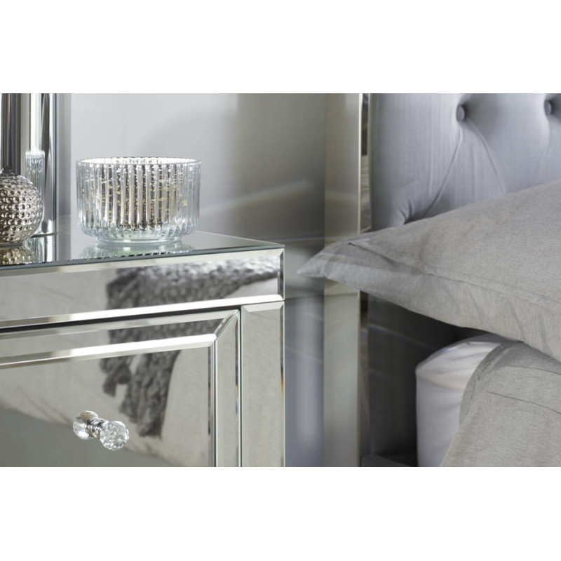 Constructed from a MDF frame with a mirrored finish with bevelled edges